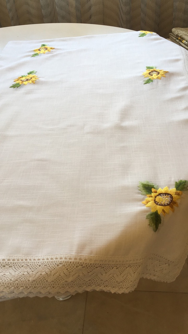 Скатертина біле полотно "Соняхи" на прямокутний стіл ручна вишивка 280*160 См