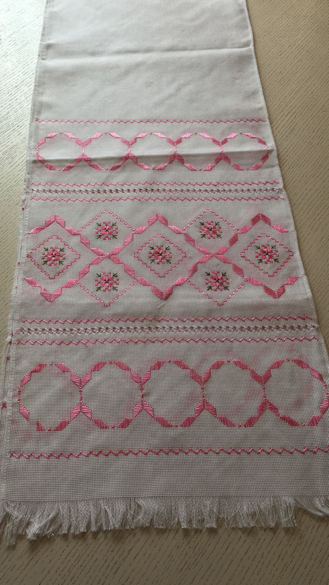 Рушник вишитий "Орнамент Гладь" рожевий на панамі ручної роботи 198*33 см